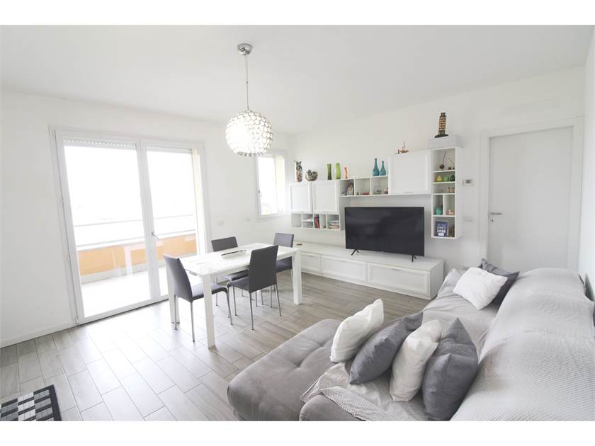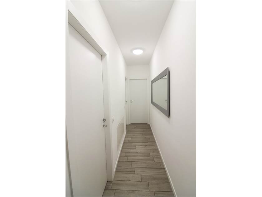 L’ingresso accompagna verso il soggiorno con cucina a vista, uno spazio accogliente e funzionale che si apre su un terrazzo vivibile, ideale per momenti di relax all’aria aperta.